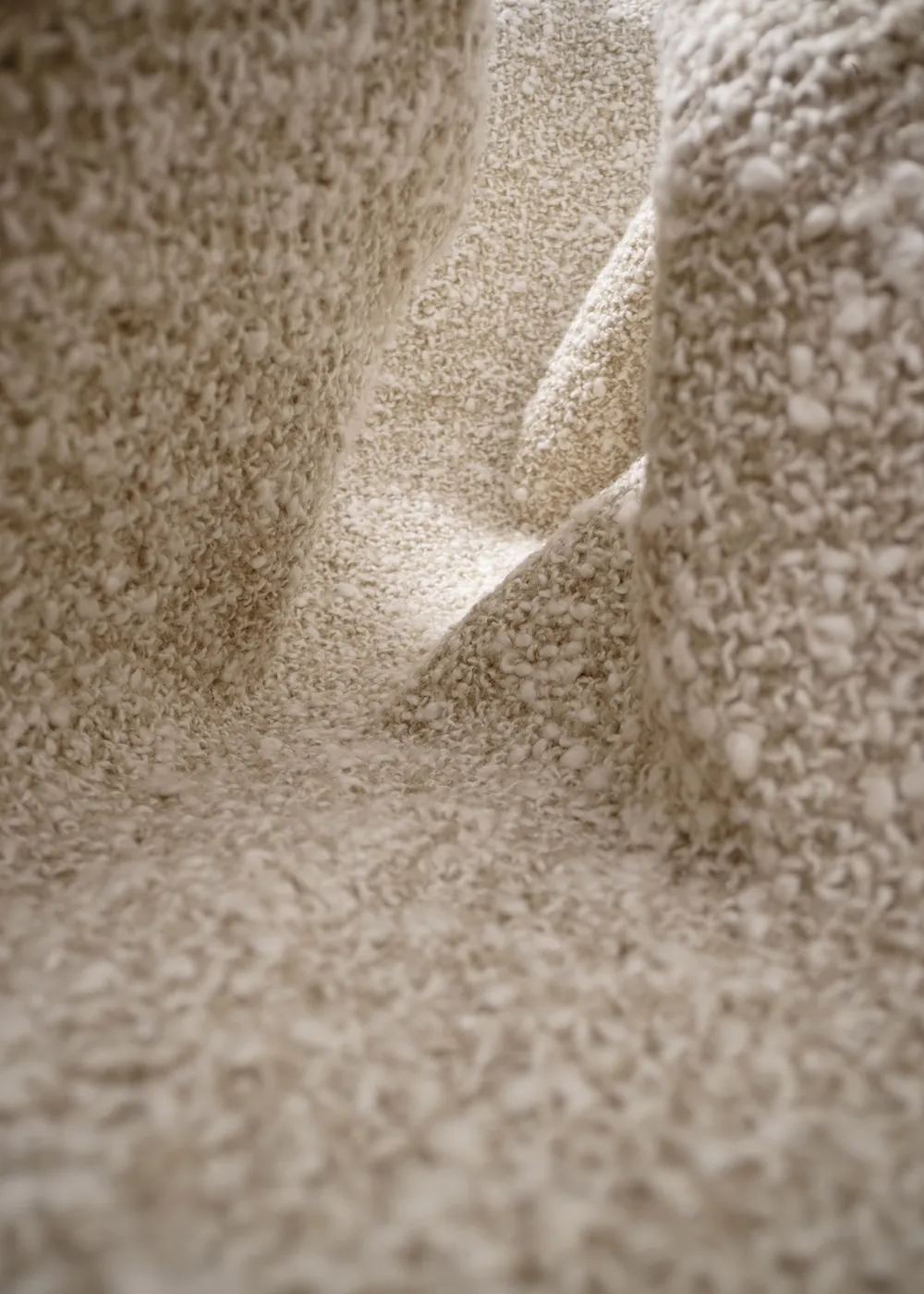 Soft and luxurious, this bouclé fabric, Zero from Sahco by Kvadrat uses a pearl effect yarn to create a highly textural feel that creates its sophisticated character. With its inspiration stemming from Parisian haute couture, the overall appearance is one of classic, understated elegance.Available in multiple colorways that are either monotonal or using a contrasting ‘salt and pepper’ combination, Zero is perfect for combining with other fabrics and materials.