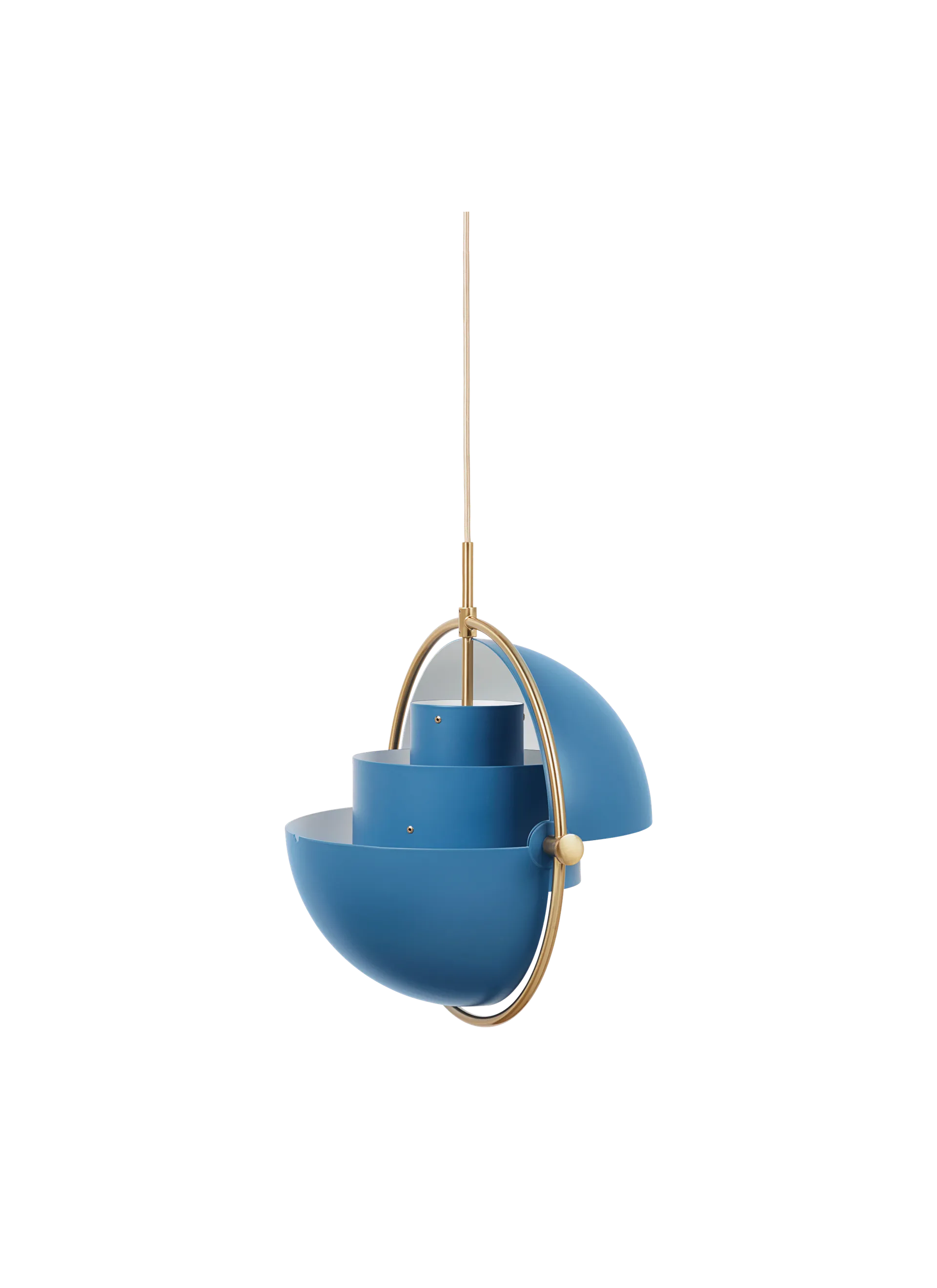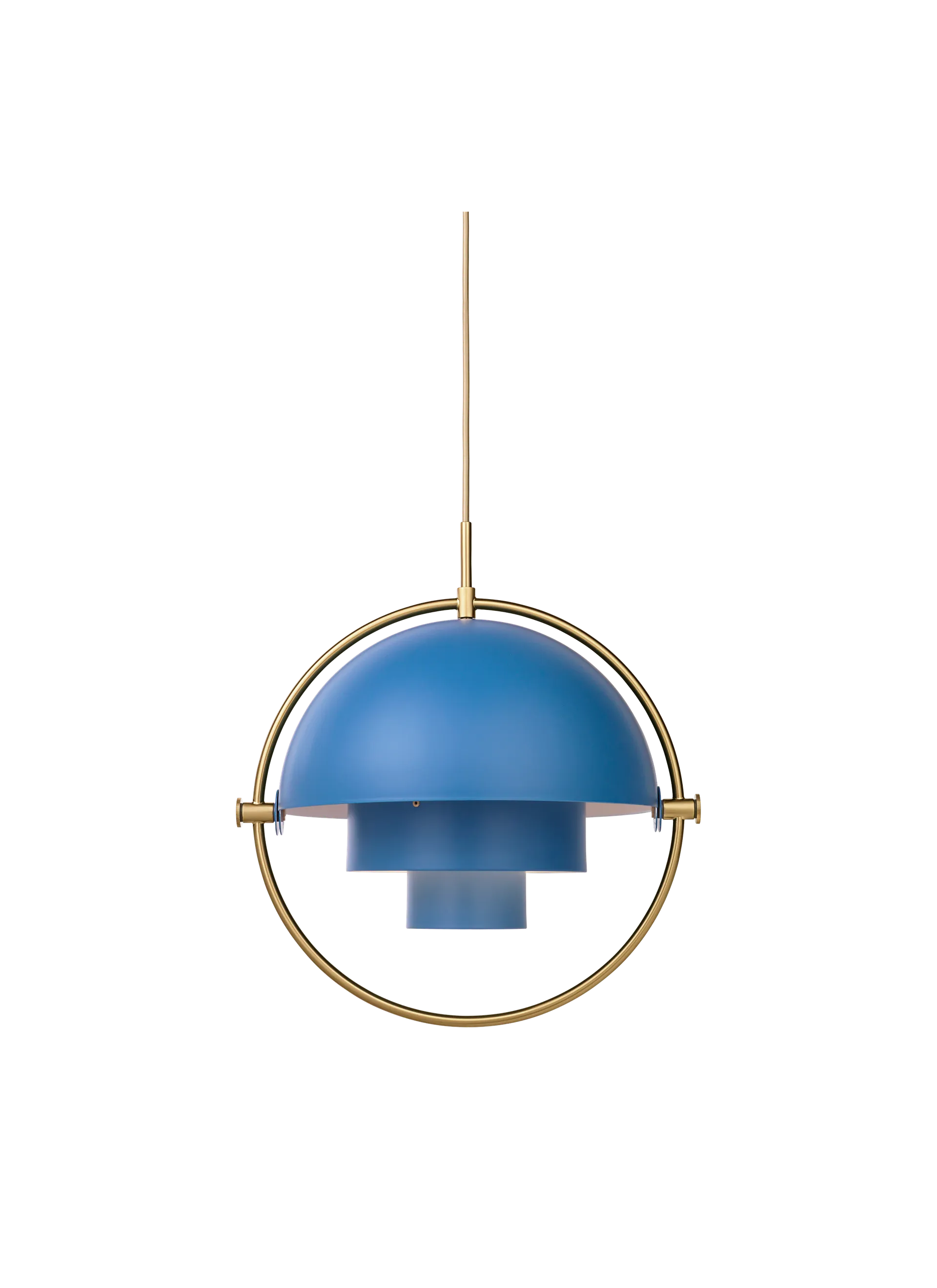 The Multi-Lite Pendant embraces the golden era of Danish design with its characteristic shape of two opposing outside, mobile shades that enable creating a personal installation and a wide range of lighting values in a room. By individually rotating the shades, the Multi-Lite Pendant can be transformed into multiple combinations where the light can be directed upwards, downwards or exude an asymmetrical art light. The Multi-Lite was first drawn in 1972 when Louis Weisdorf did an exception to his own design custom of using multiple repeating elements. Instead, it reflects his passion for diversity. Two cylindrical shapes lay the foundation of the lamp and a metal ring encompasses it and anchors the two quarter-spherical shades, which ultimately completes a picture of an iconic design with multiple purposes. The Multi-Lite Pendant has a timeless expression that fits into any domestic setting.