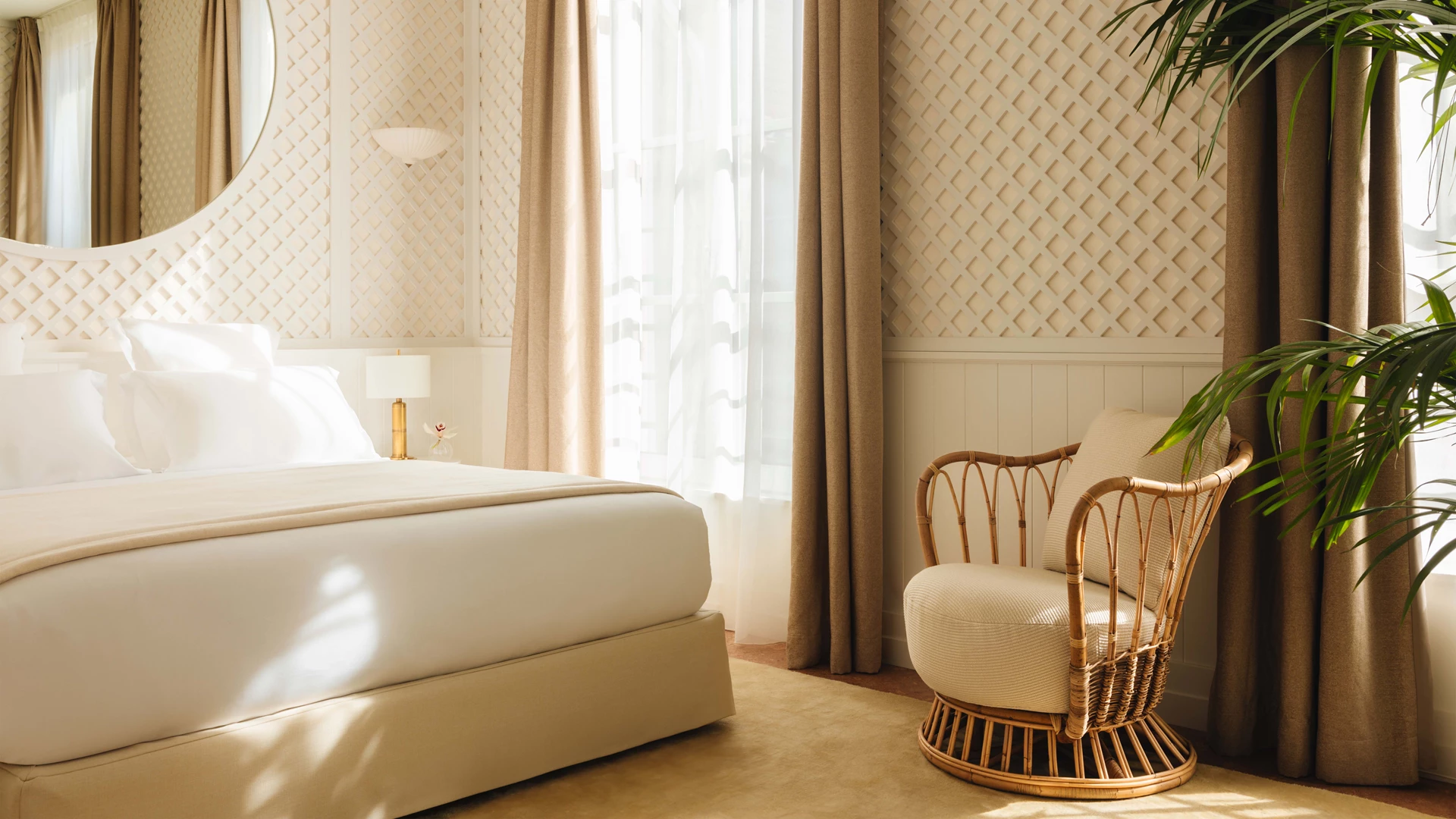 An elegant, organic and harmonious compendium of curves, the Grace Chair by Tove Kindt-Larsen leads the contemporary revival of the sustainable and natural rattan material. Inspired by the soft curves of pebbles and driftwood she would collect from the beaches of northern Denmark, architect and designer Kindt-Larsen’s envisioned a graceful refinement of the informal rattan lounge chair. With its sweeping, gentle curves and intricate loops of flexible rattan, it supports a generous, upholstered seat and envelopes a plump, loose back cushion. Together they bring a comfort, tactility and and lightness that brings the outdoors inside, while the characteristics of the rattan frame give it a natural robustness and longevity. The timeless beauty of Tove Kindt-Larsen’s 1936 design and the sustainability of the rattan material make the Grace Chair a highly versatile and popular addition to the GUBI collection. With a choice of upholstery options available, it can add light and texture to a home and an informal yet elegant welcome to hotel or business interiors.