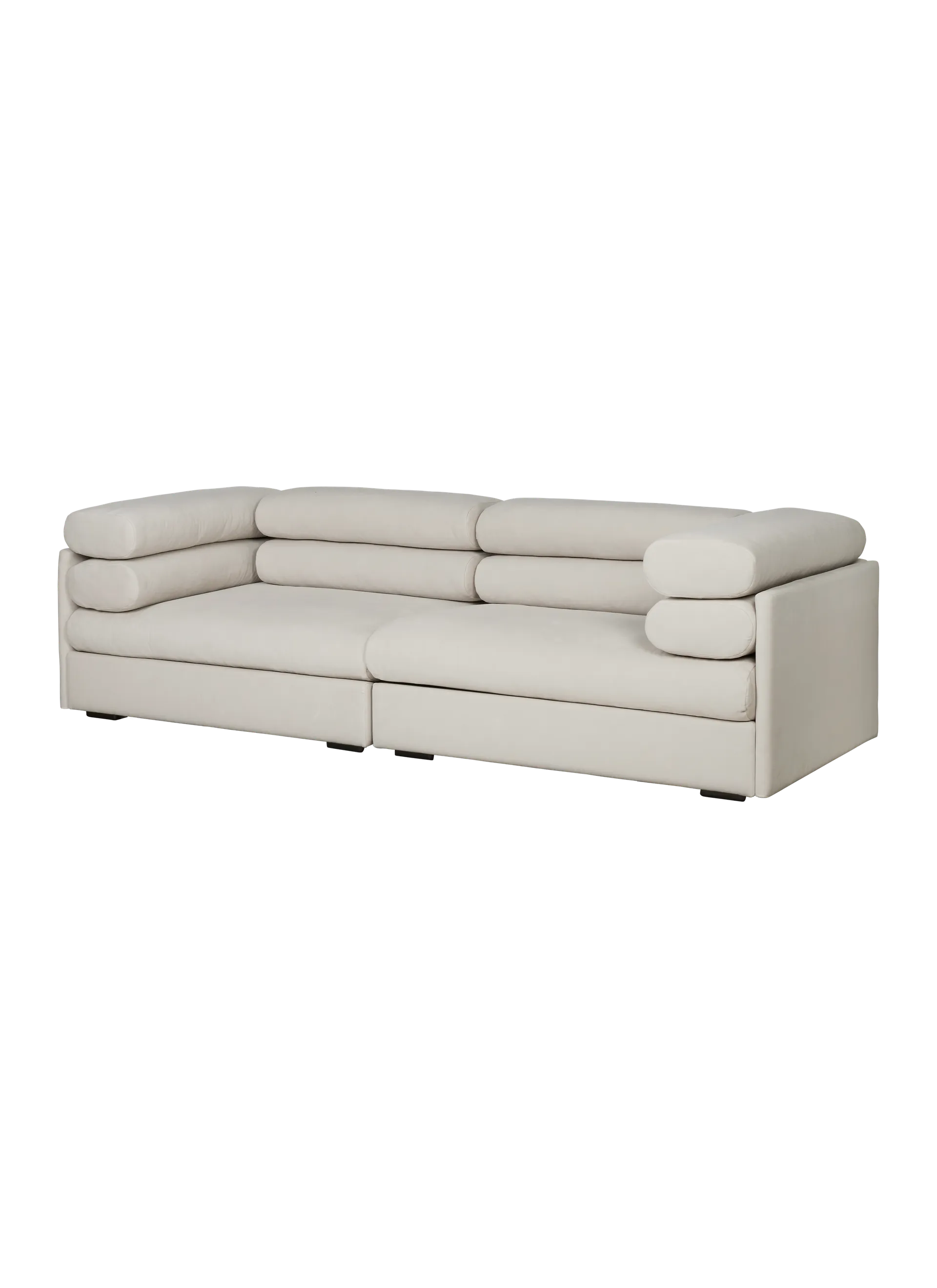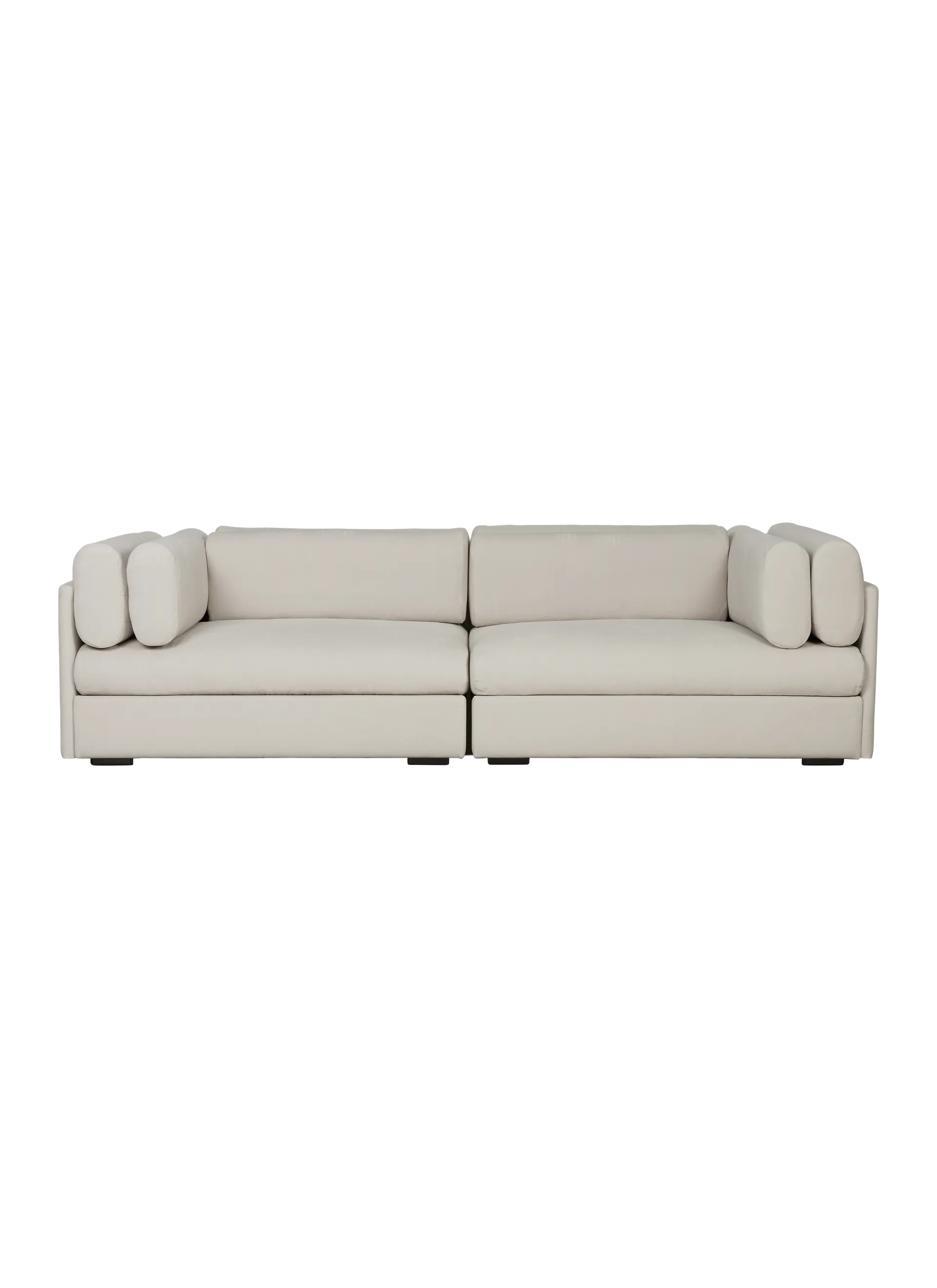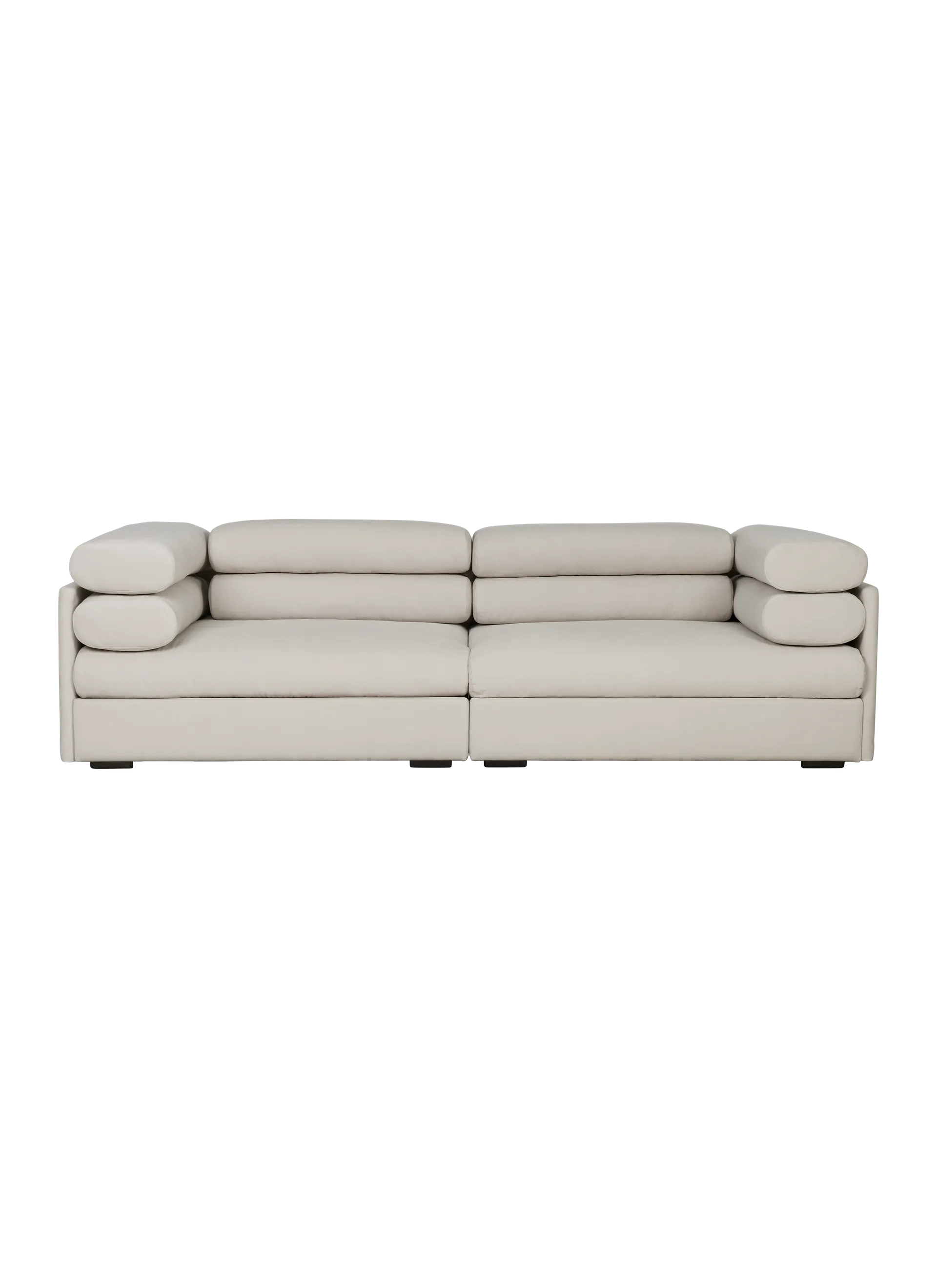 It is not only Elogio’s modules that are adaptable; the oversized cushions are designed to be reconfigured, allowing users to play with form and function and enabling the sofa to evolve with the space and the user’s needs. Identical in size, the side and backrest cushions are interchangeable, creating rhythmic geometries and reinforcing the intentionality of the design.