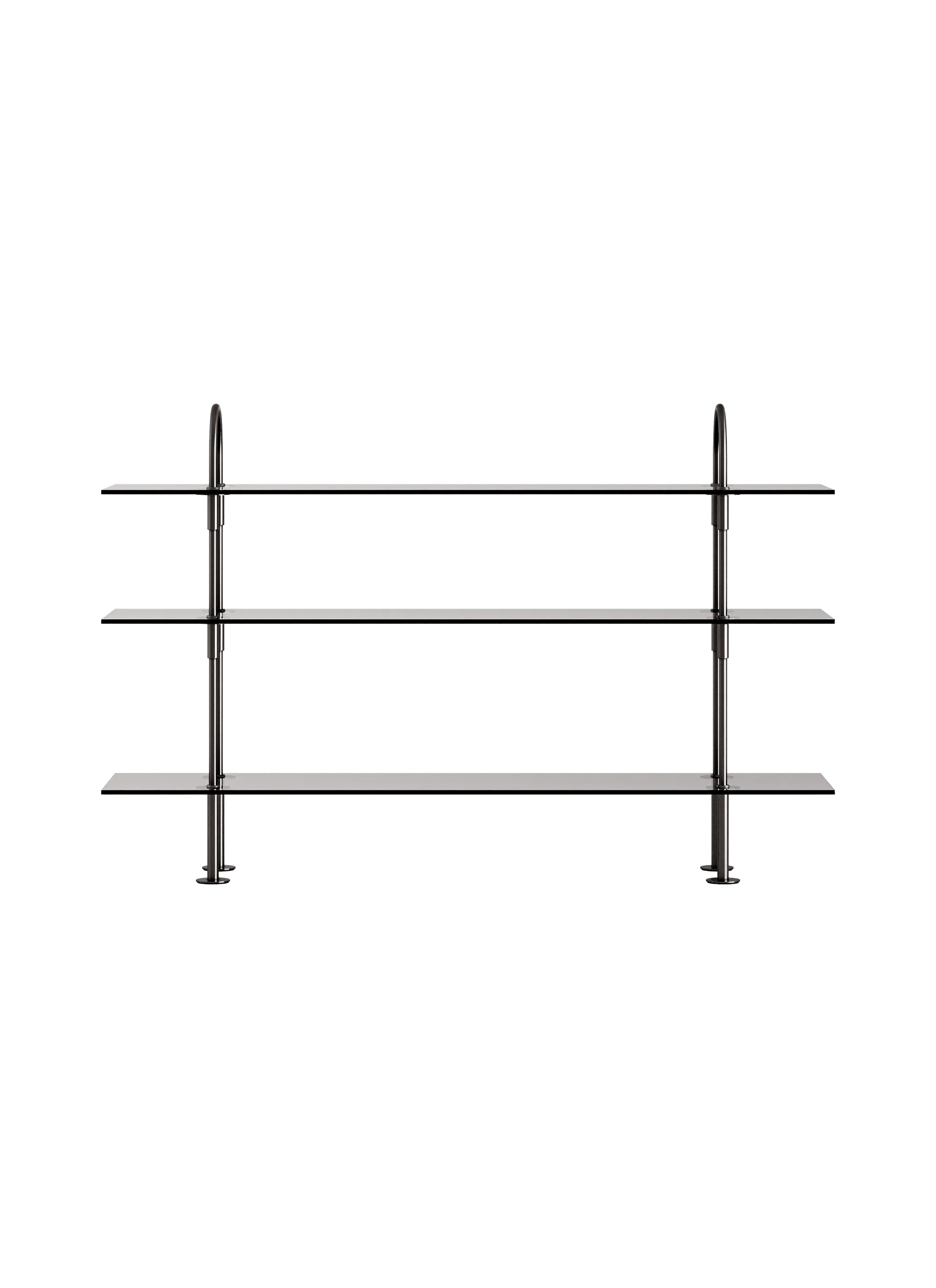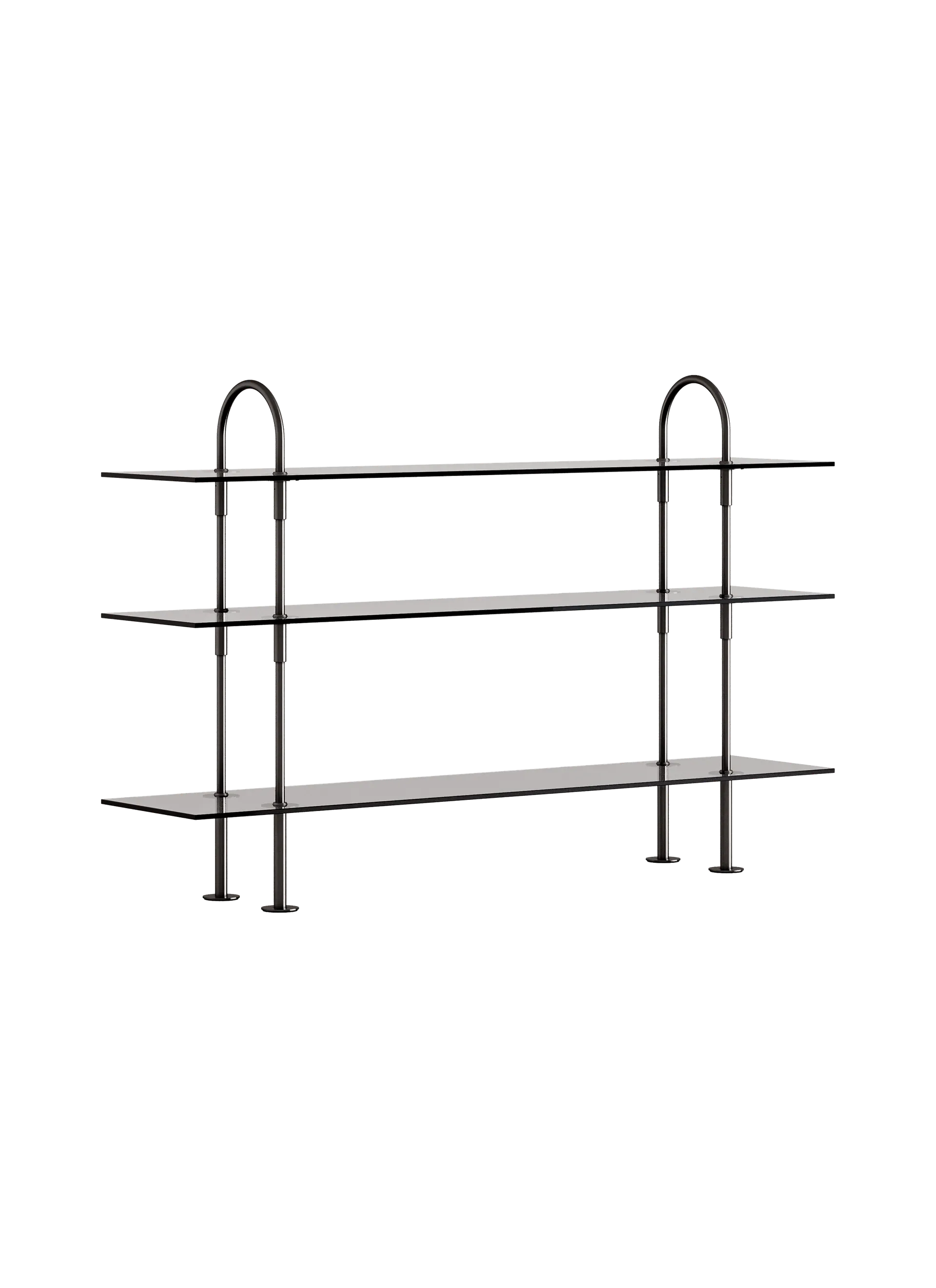 The FSC®-certified black-brown stained ash is the darkest shelf option, offering a quietly confident foundation that supports both utility and visual calm, while the ALPI Sottsass Gray veneer (FSC® C176589) introduces an unexpected softness and tactile depth, with its swirling, almost fabric like patterned gray surface. For a more sculptural and modern aesthetic, cool-gray tinted-glass shelves add semi transparent layers that emphasize Keen’s structural rhythm and playful expressiveness.