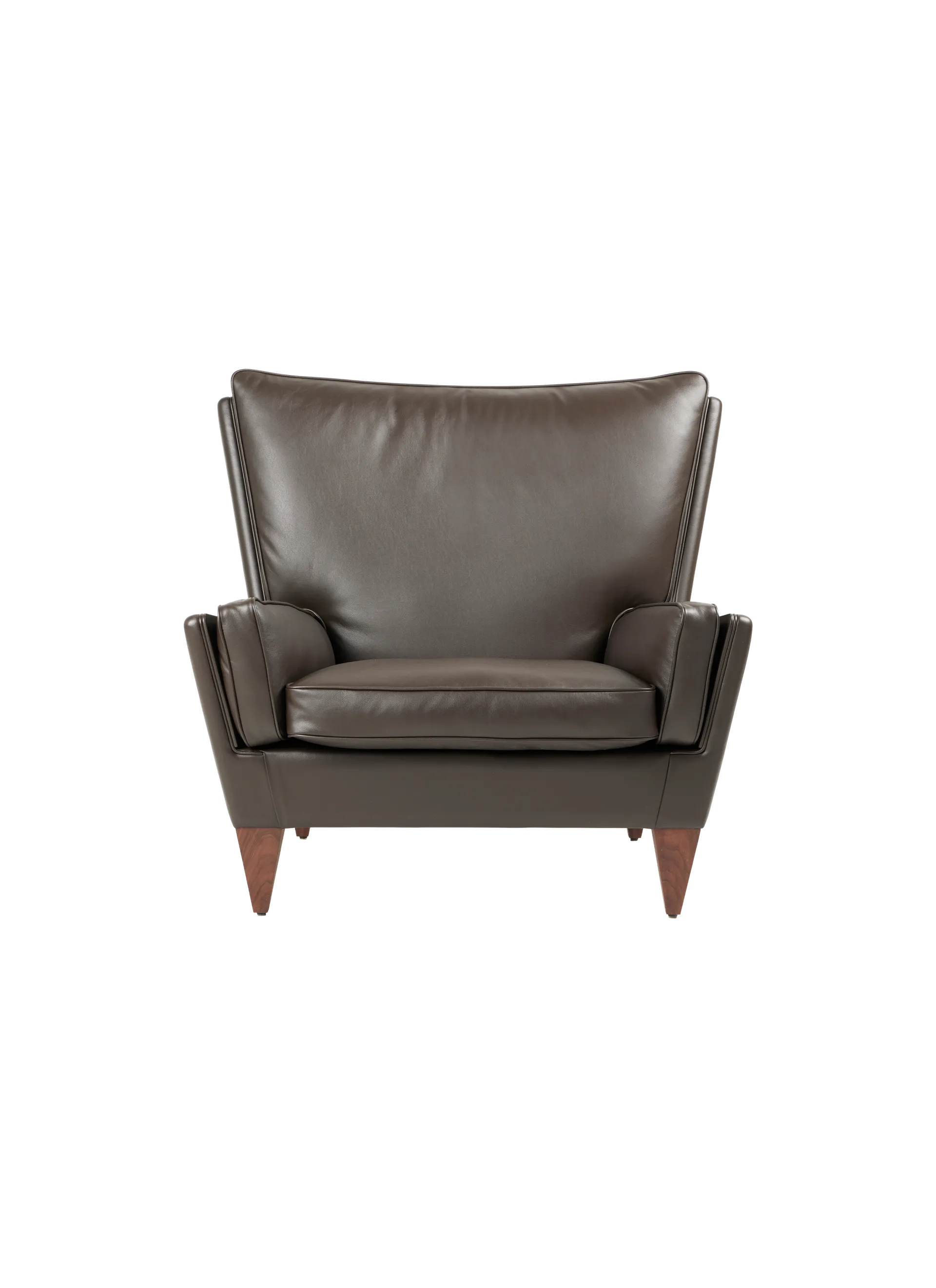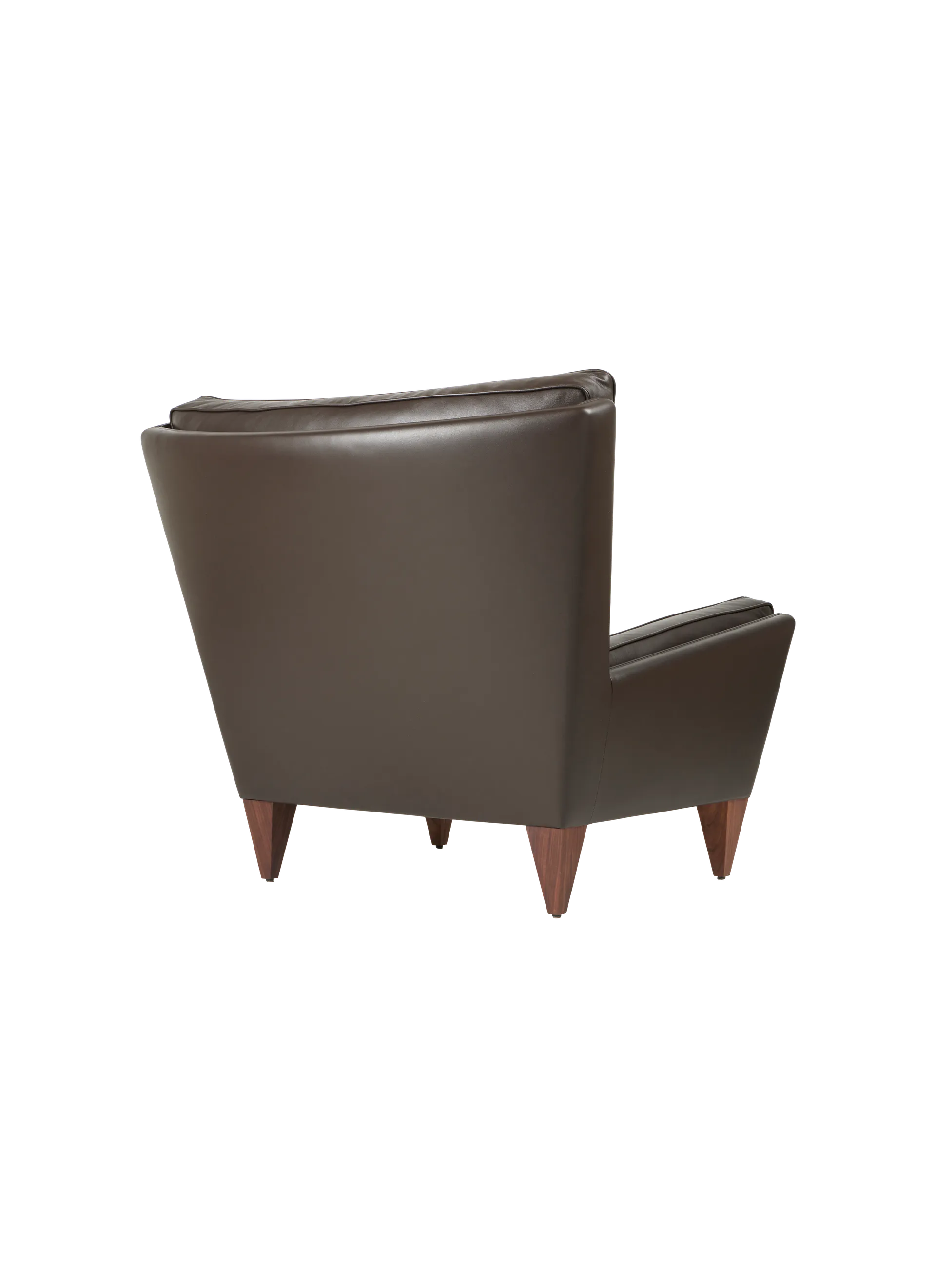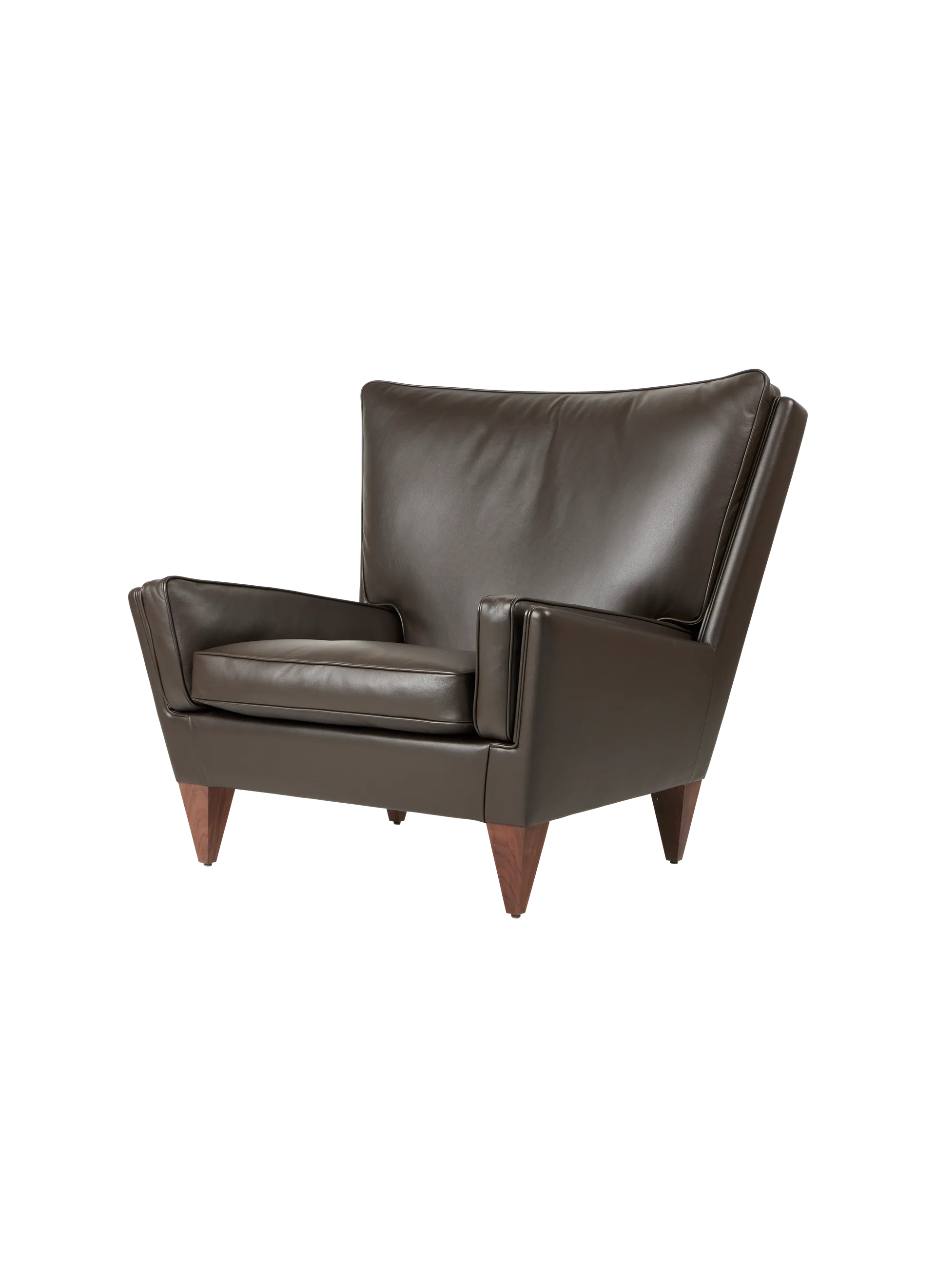 First designed in 1965, the V11 Lounge Chair is one of the most revered and highly sought-after seating designs by the leading 20th-century Danish designer Illum Wikkelsø. Like GUBI’s other Wikkelsø design, the V11 is exemplary in craftsmanship and distinctive in form, with an angular trapezoidal body echoed in its signature inverted- pyramid legs in solid wood. Despite these seemingly sharp angles, the V11 is crafted for comfort, exemplifying Wikkelsø’s belief that chairs should accommodate a variety of seating positions. Painstakingly recreated by GUBI using a process of 3D scanning, the V11 family includes a lounge chair and accompanying ottoman, both FSC® certified (FSC®-C176589), and available with an extensive choice of upholstery options, demonstrating the design’s aesthetic versatility.